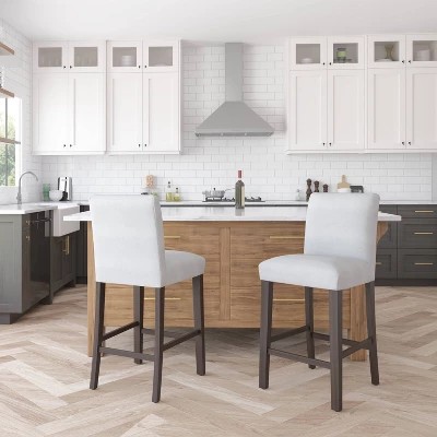 Elevate your home bar seating with this Velvet Parsons Barstool from Threshold™. This modern armless bar stool features a well-padded seat and backrest along with built-in footrest bars for additional sitting comfort. The plush solid-color velvet upholstery goes easily with a range of decor styles, while the wood frame and legs offer a classic, elegant base.