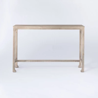Finish off your home decor with charming appeal by adding the Belmont Shore Curved Foot Accent Table Fully Assembled from Threshold™ designed with Studio McGee. This stylish wood accent table features a clean natural finish that looks great on its own or can be painted to match the color scheme of any room, and has an elongated design that is perfect for narrow hallways and entry areas. It sports four legs with curved feet and a crossbar for a bit of extra styling and is made from durable wood for an authentic look and lasting use. Place a lamp, decorative vase or some old books on top for a cute, functional addition to any room.