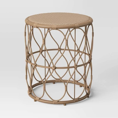 Create the look you want for your outdoor space with the Britanna Accent Table from Threshold™. This round patio table is made with a metal frame that features two rows of open teardrop-shaped accents made of wicker for an eye-catching look. Place in between patio chairs for a convenient spot to hold drinks and snacks, or set it at your deck or patio door to hold a trailing potted plant or a decorative statue, creating a cozy, inviting atmosphere.