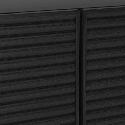 Complete the look of your home with this Fluted TV Stand for TVs up to 55-Inch from Threshold™. This black TV stand features a fluted design at the front to bring extra visual appeal. Designed with four cabinet doors and two adjustable shelves, this TV stand helps provide ample space for your gaming consoles, remotes and other essentials.