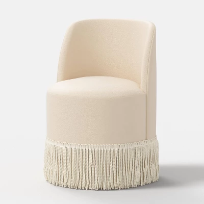 Bring chic, bohemian charm to any seating arrangement in your home with this Jessa Fringe Chair from Threshold™. The upholstered chair boasts a modern look with fringe detailing supported by a wooden base for a luxe feel that blends effortlessly with any decor style. Solid fabric upholstery blends easily with your existing decor, while the generously stuffed seat and back offer a comfy sitting experience whether you’re curled up with a book or watching movies on the weekend.