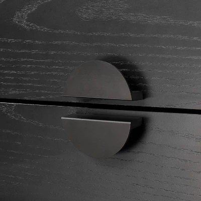 Flaunt your collection of books with the modern style of the Marvale Bookcase with Drawer from Threshold™ designed with Studio McGee. This tall, sleek bookcase features multiple open shelves and a built-in drawer to elegantly display decorative items, books and other pieces. Set on four legs, this wood bookcase in a black finish makes a beautifully functional addition to your home.