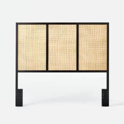 Upgrade your bed with the naturally modern style of the Queen Springville Headboard from Hearth & Hand™ with Magnolia. This queen-size wood headboard is designed with a black frame and three-panel silhouette featuring woven cane detailing to add artisanal flair and functionality to your bedroom.